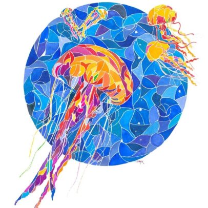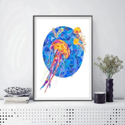 Underwater Jellyfish Canvas Painting – Posters and Prints Wall Art Pictures – No Frame