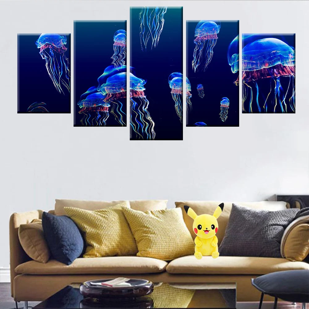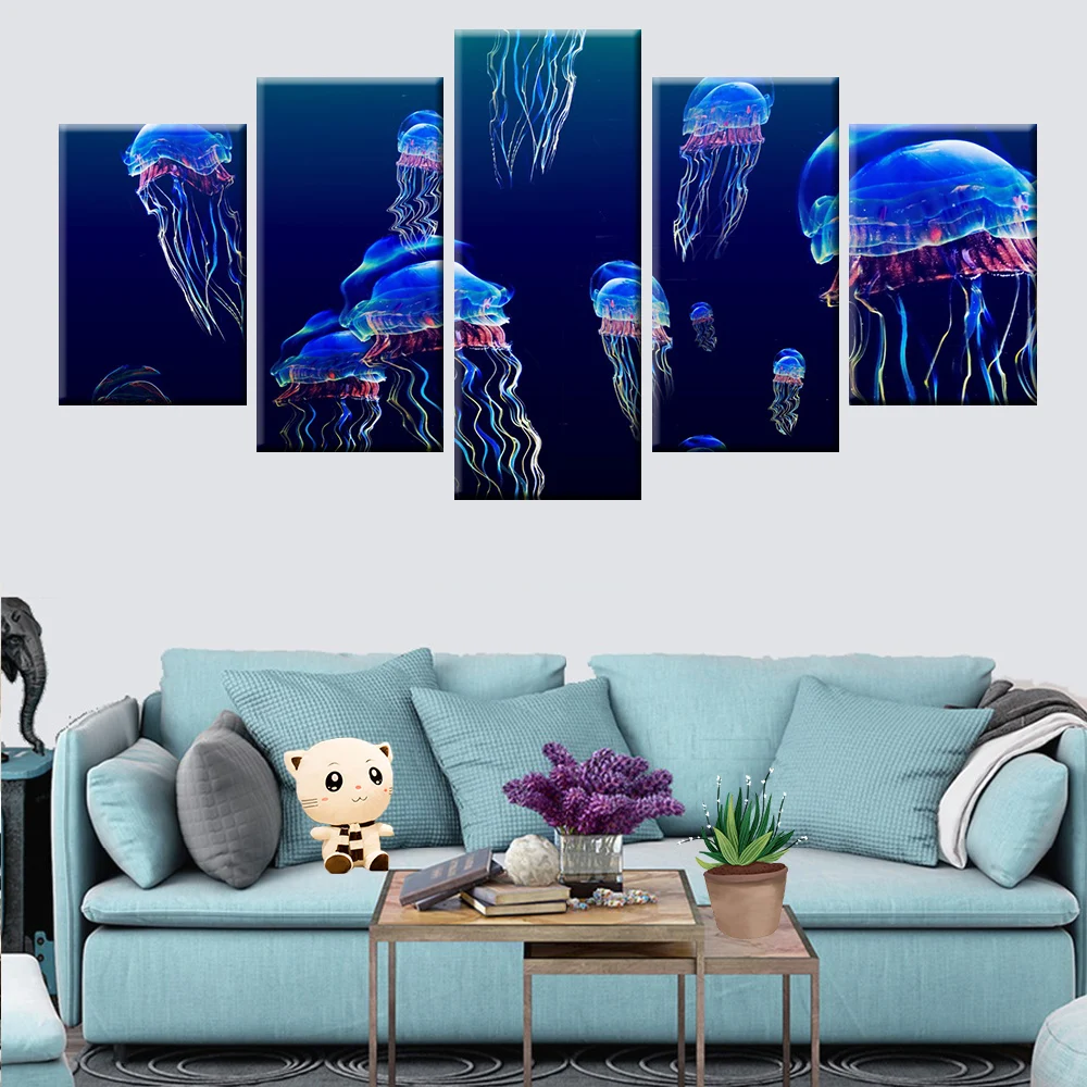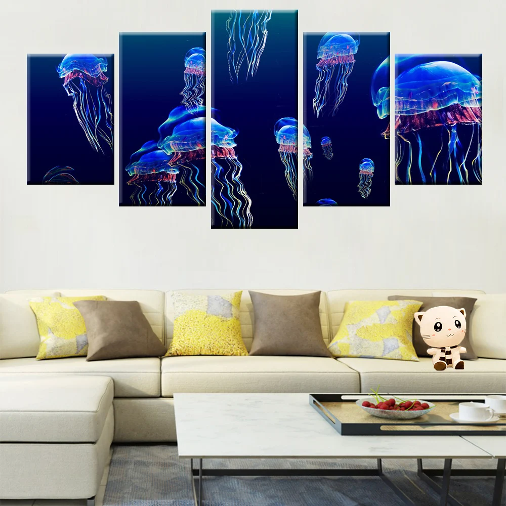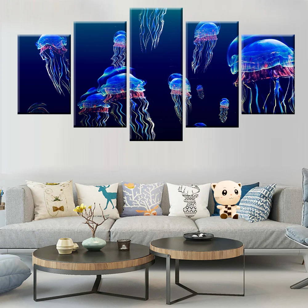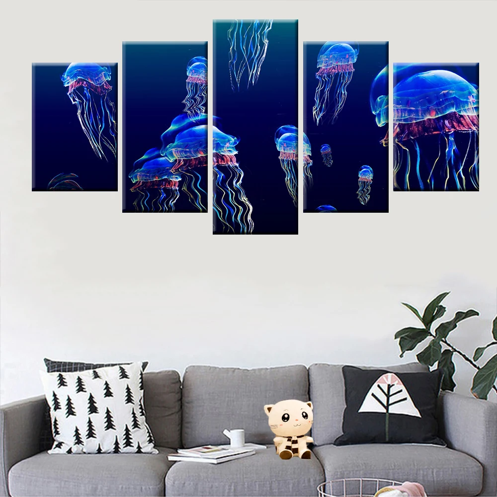 5 Piece Colorful Jellyfish Panel Wall Art.
