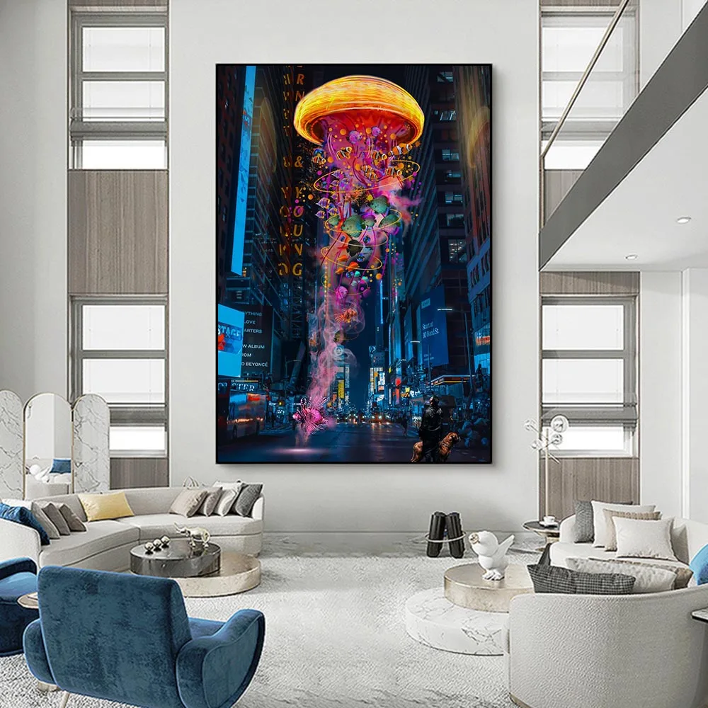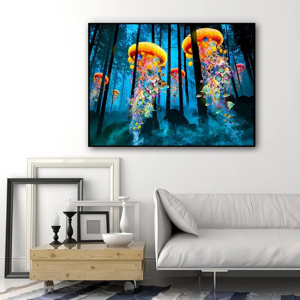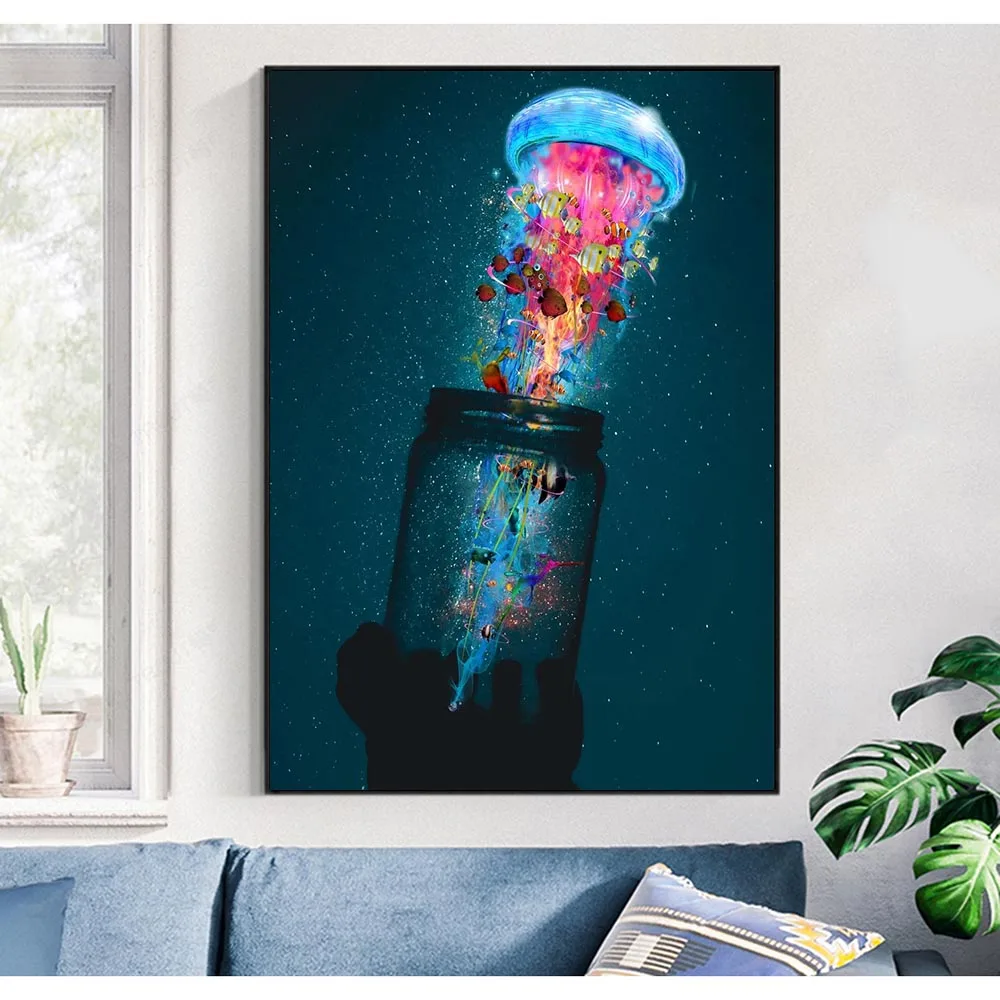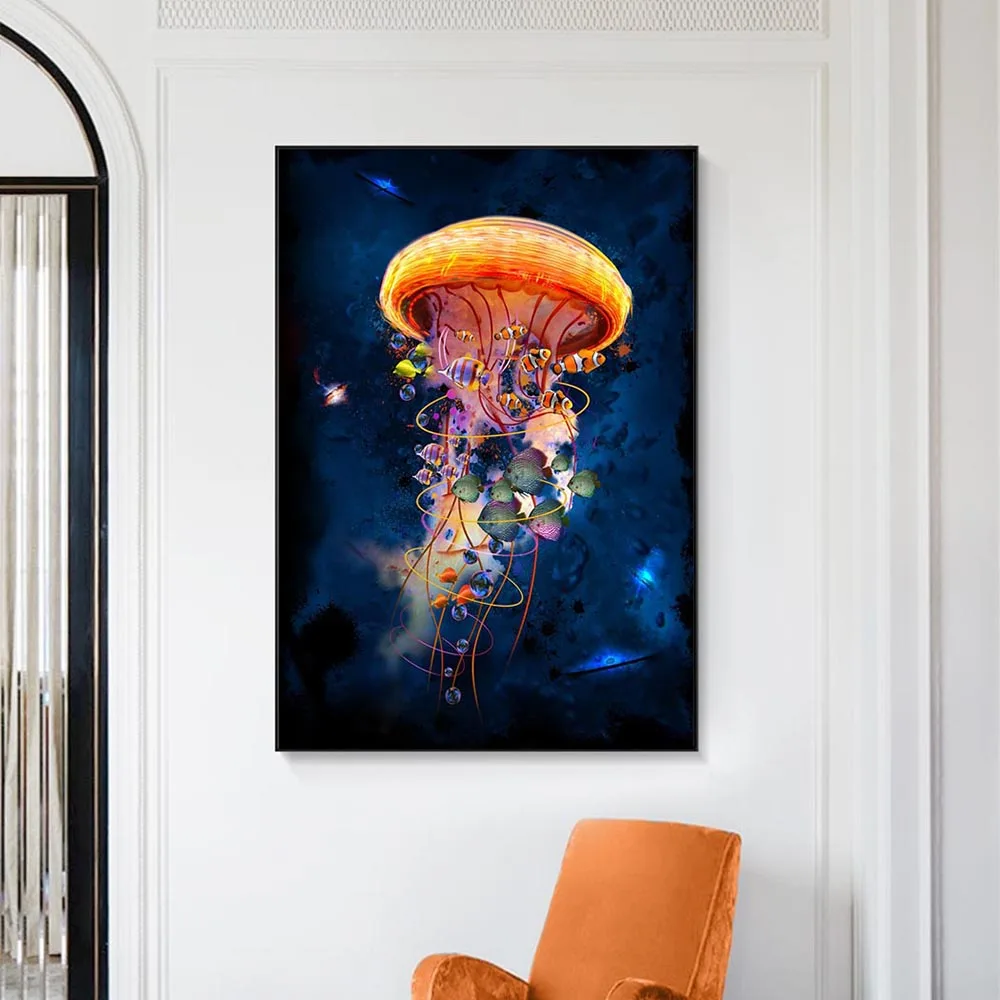 Jellyfish canvas wall art paintings are beautiful pieces of art that feature images of jellyfish in various styles, colors, and compositions.