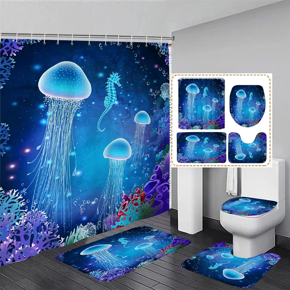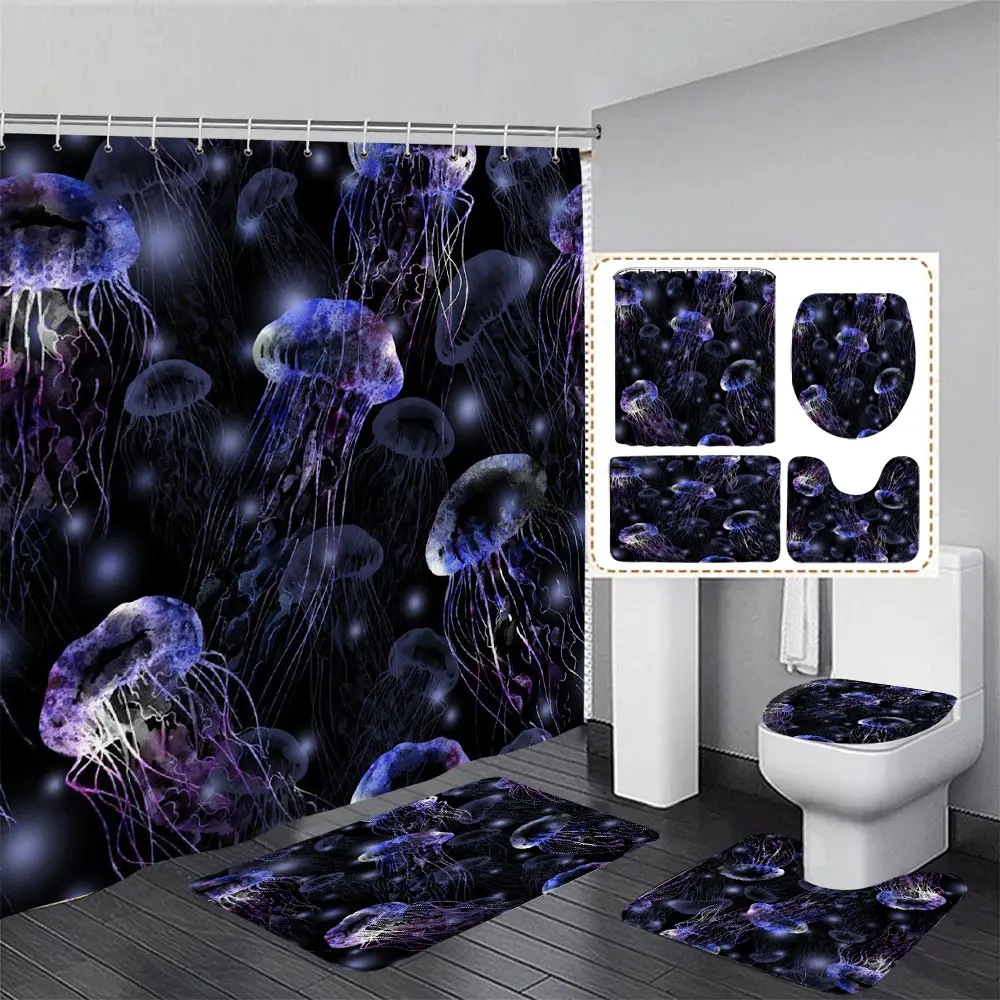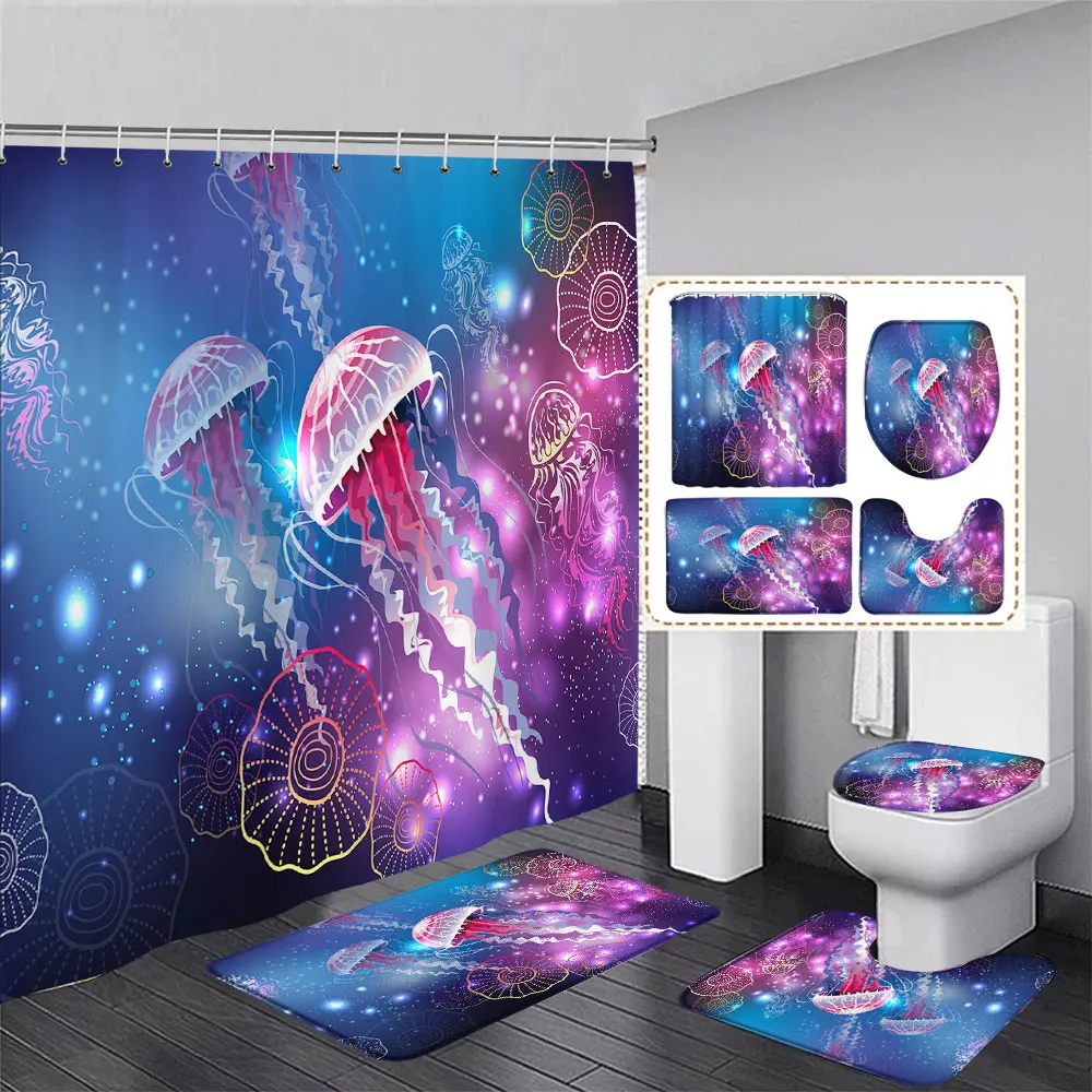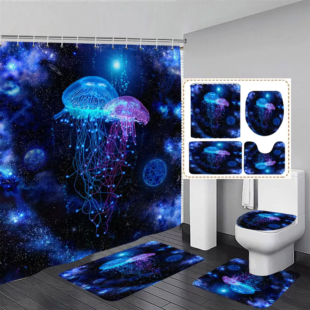 Dreamy Sky Jellyfish Bathroom Set – Shower Curtain Non-Slip Mat, Rugs, Toilet Seat Cover, Bathroom Decor