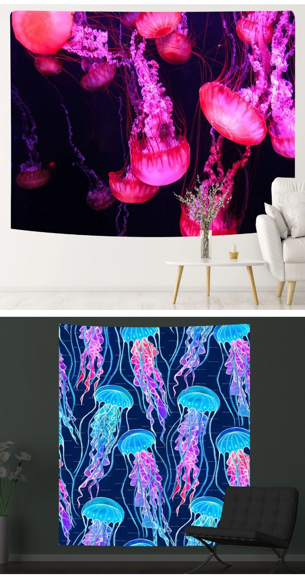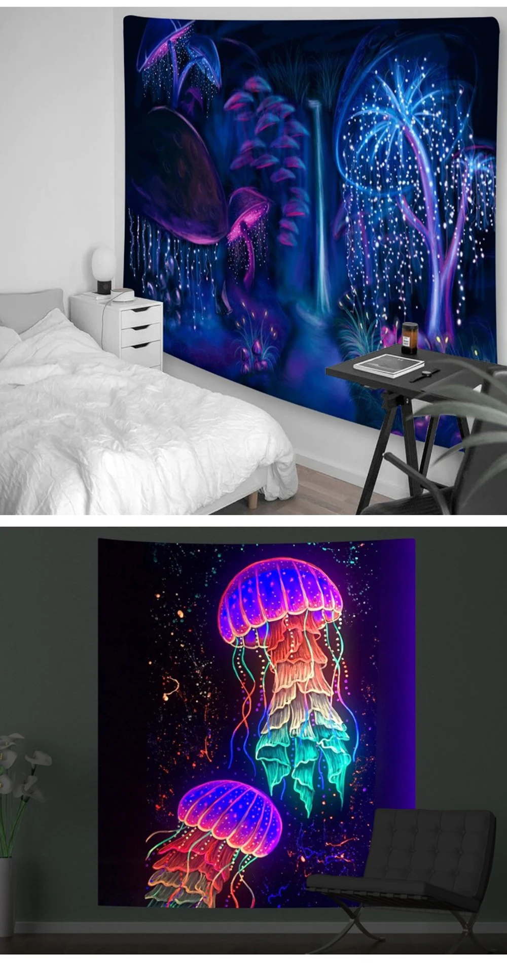 Jellyfish Psychedelic Fluorescent Tapestry Home Decoration