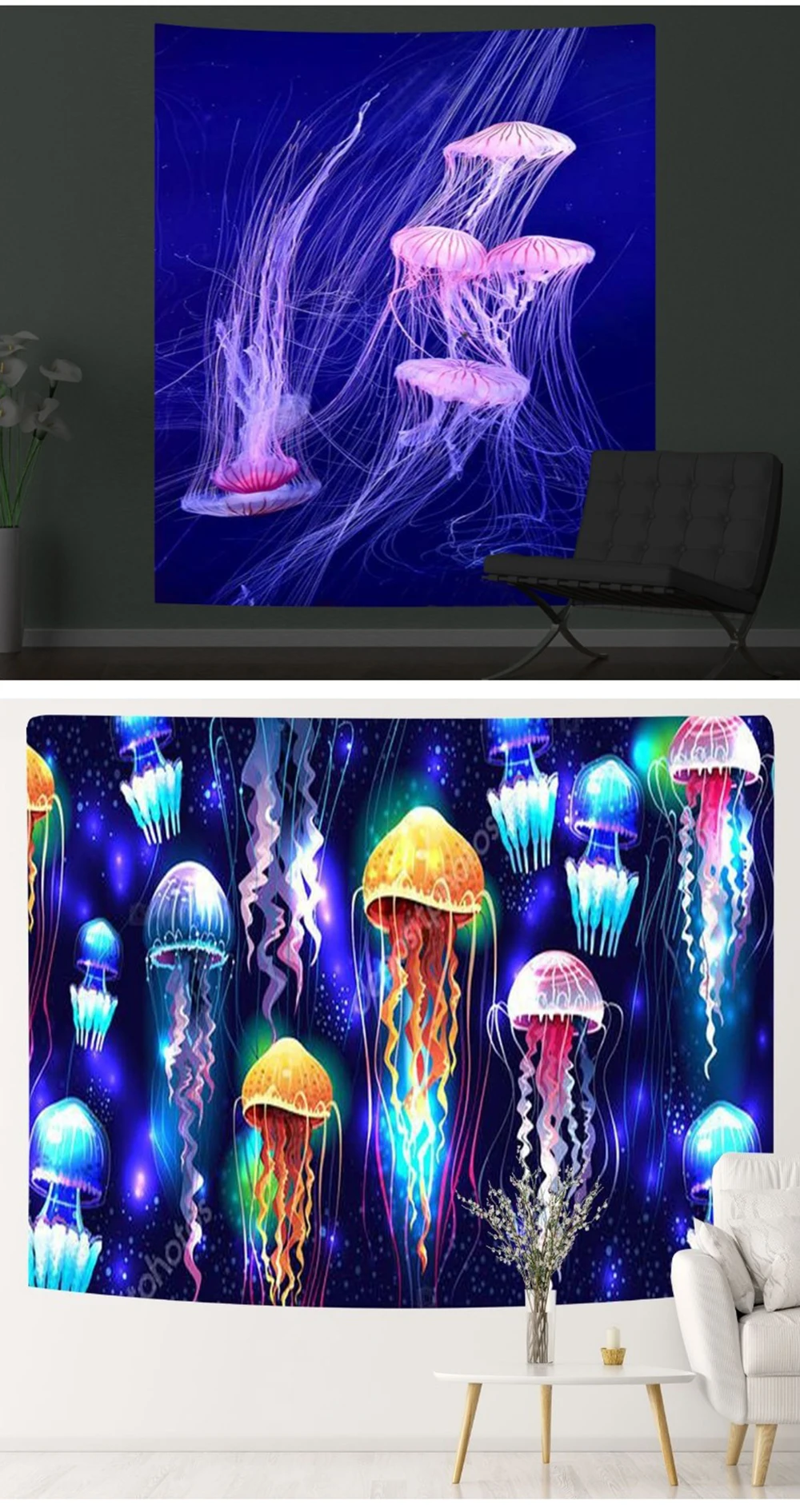 This tapestry is versatile and can be used as a wall hanging, bedspread, or even a picnic blanket. With its unique design, the Jellyfish Psychedelic Fluorescent Tapestry is sure to become a conversation starter and a cherished addition to any home.