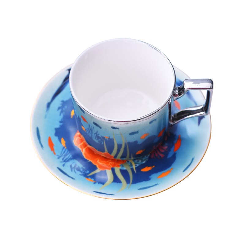 The coffee set with amazing sea world reflection. The best cups and saucers to enjoy your coffee and tea with your friends and family.