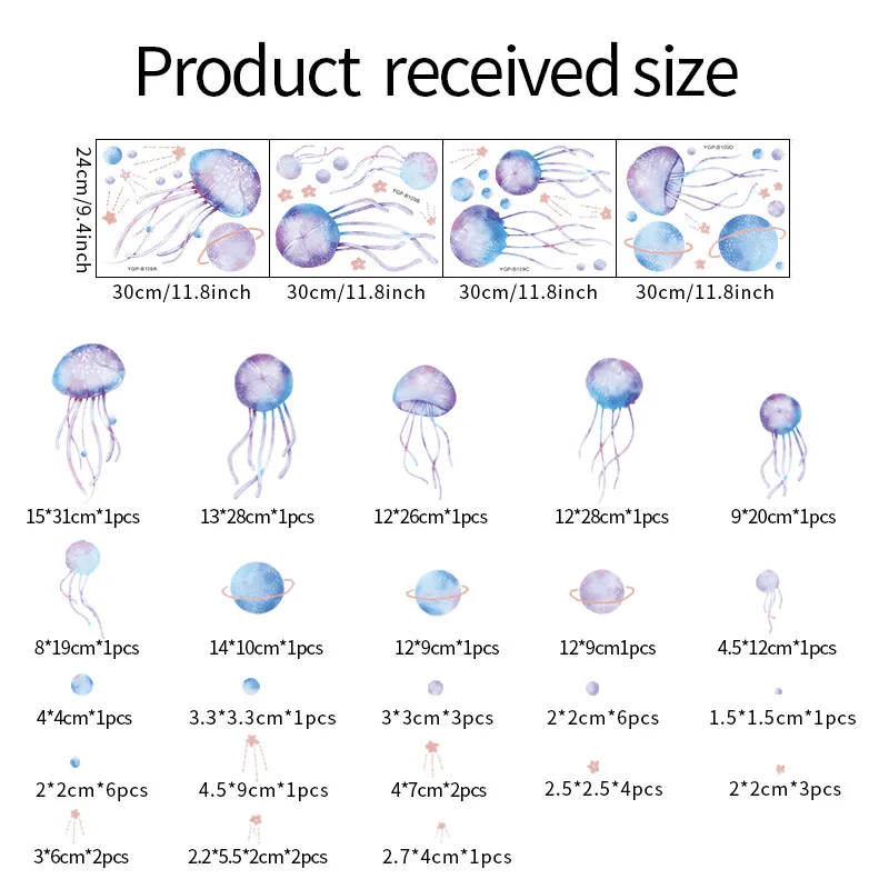 These stickers feature glowing jellyfish designs that create a mesmerizing and calming atmosphere in any room. They are made of high-quality, luminous, materials and are easy to apply and remove without damaging the walls.