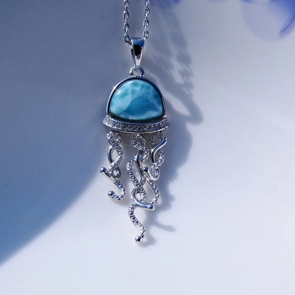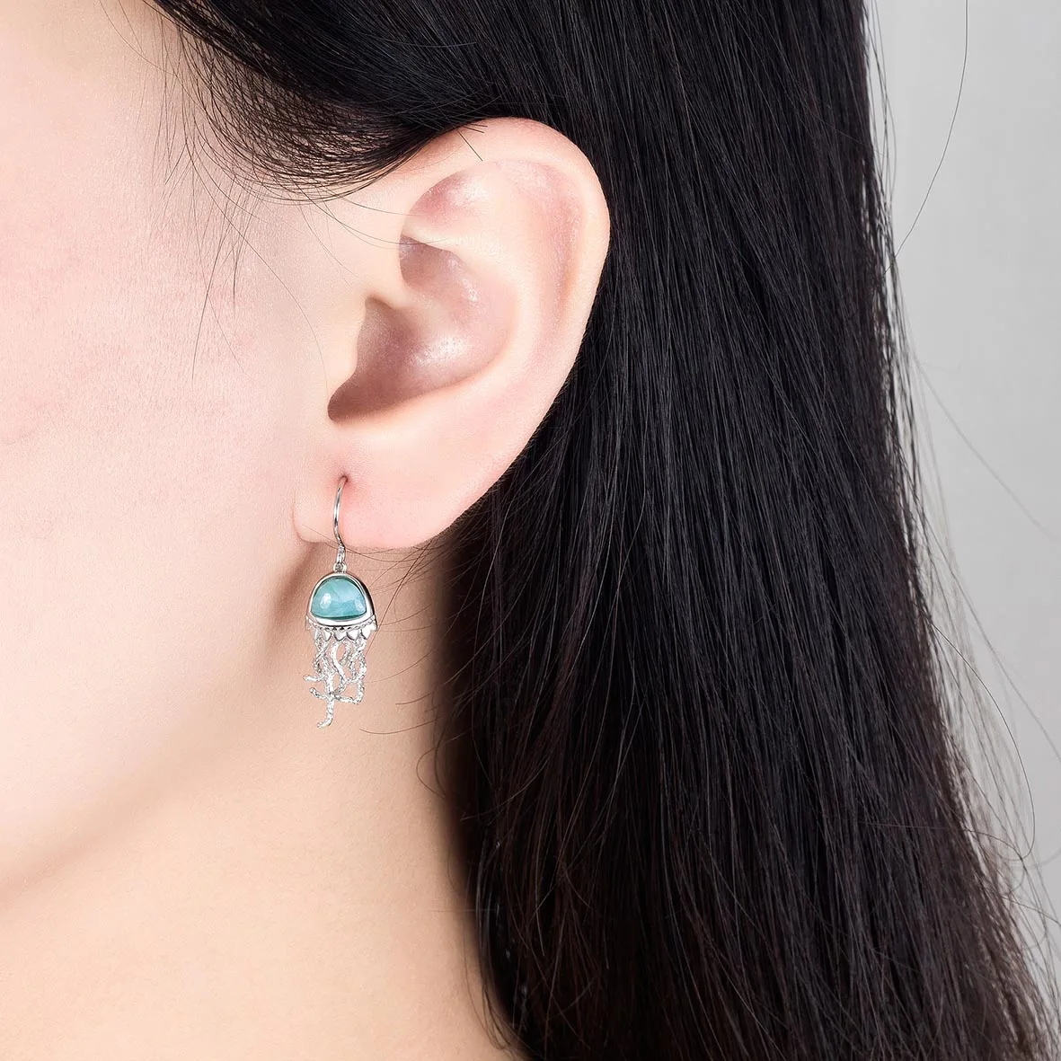 Sterling Silver Natural Larimar Jellyfish Earrings And Pendant For Women – Drop Earrings – Perfect Gift