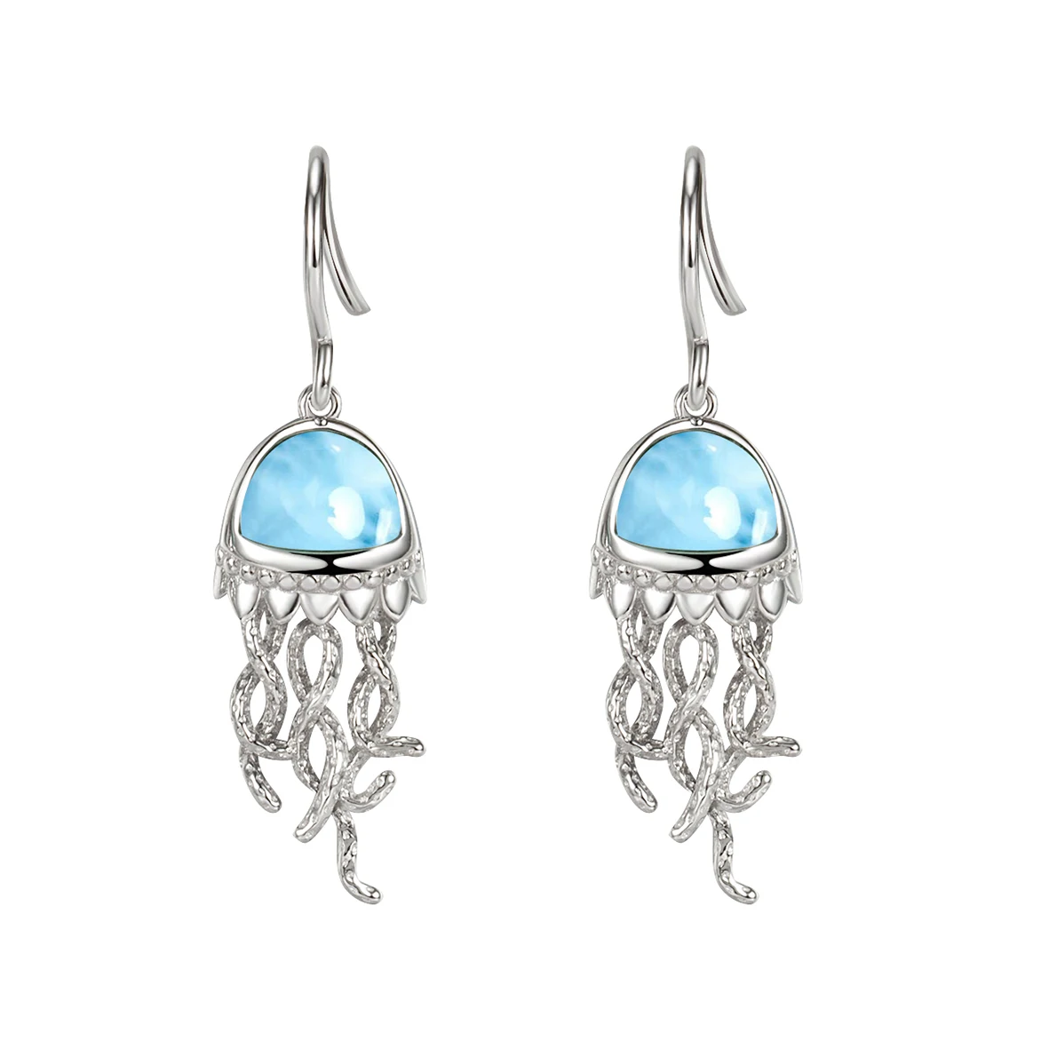 Delightful, sting-free jellyfish dance from your ears with our Jellyfish earrings. This detailed design combines luminous Larimar with tentacles of sterling silver to create a magical ocean-like vision of these amazing animals.